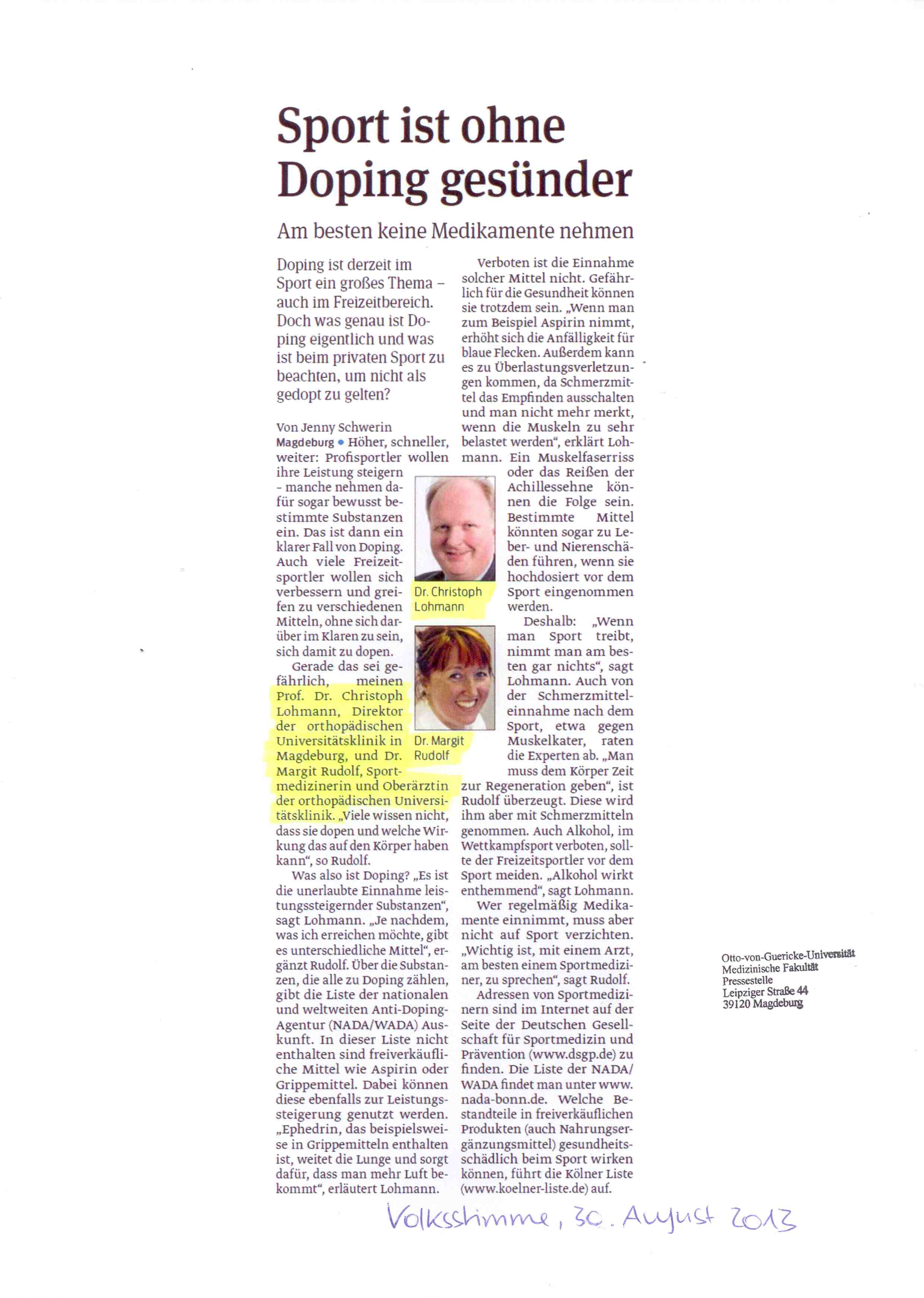 30.08.2013 "Sport ohne Doping" Magdeburger Volksstimme