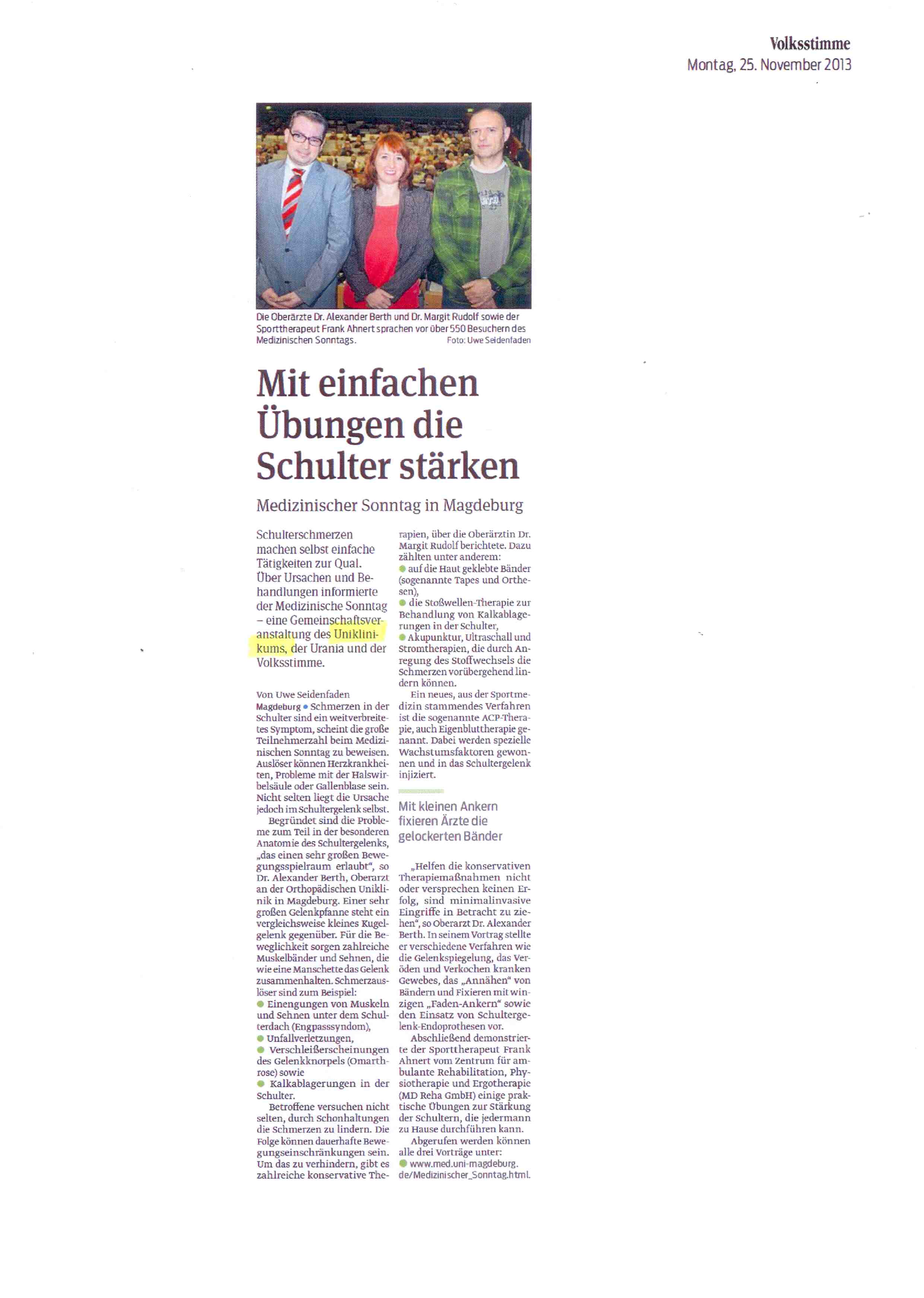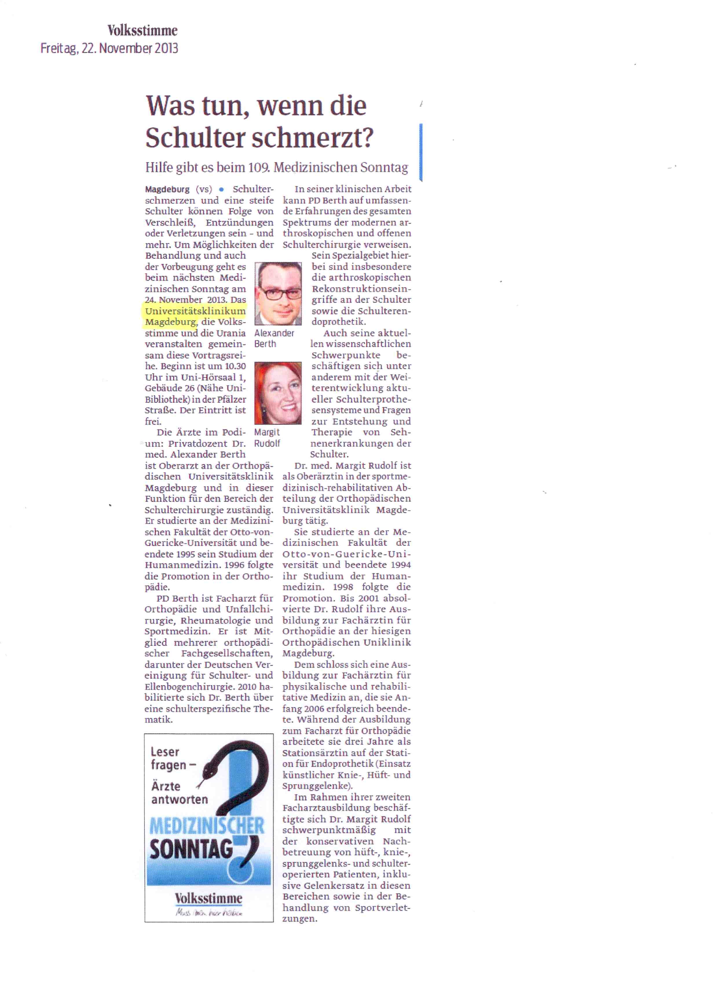 22.11.2013 "Was tun wenn die Schulter schmerzt? Magdeburger Volksstimme