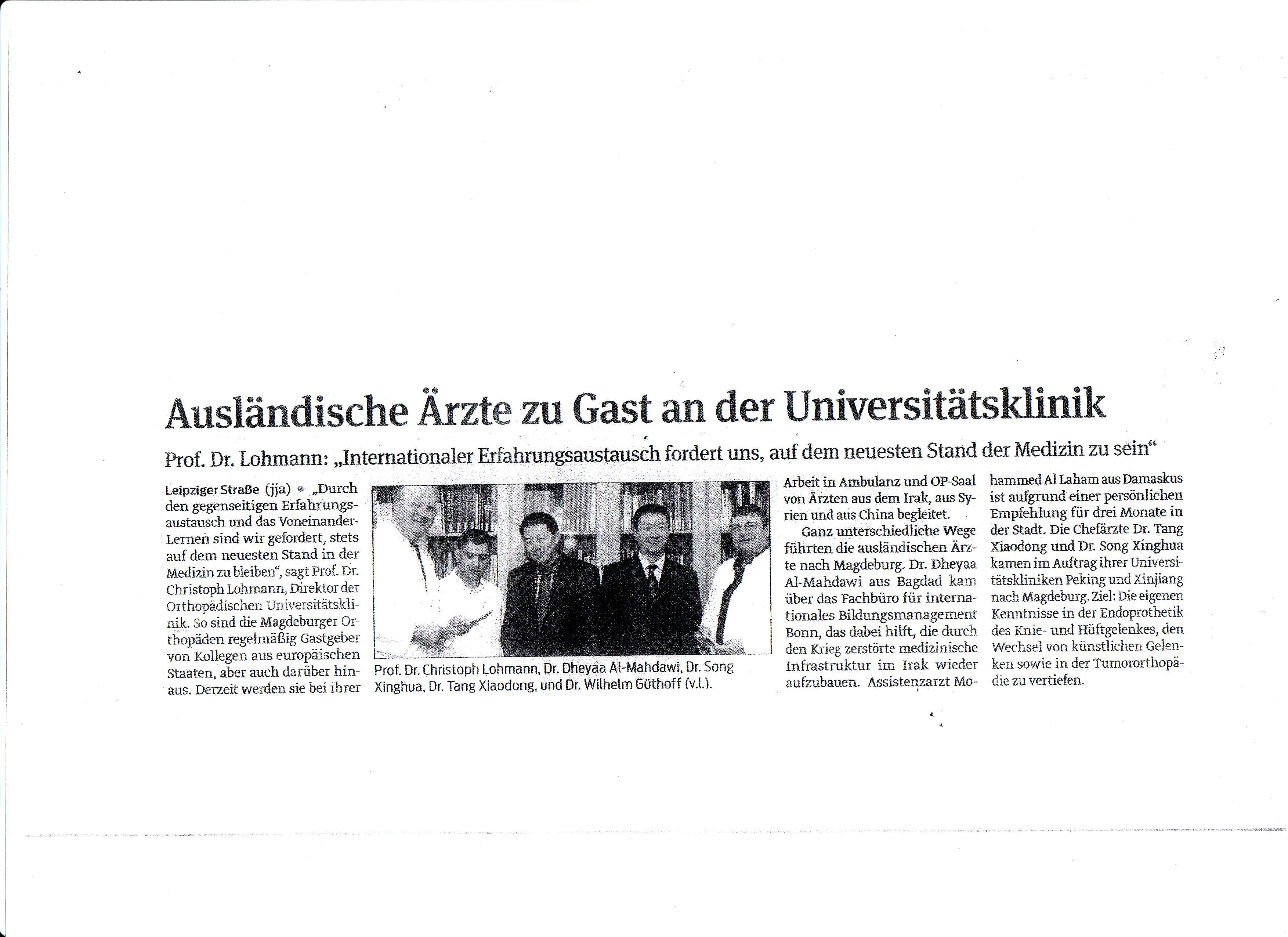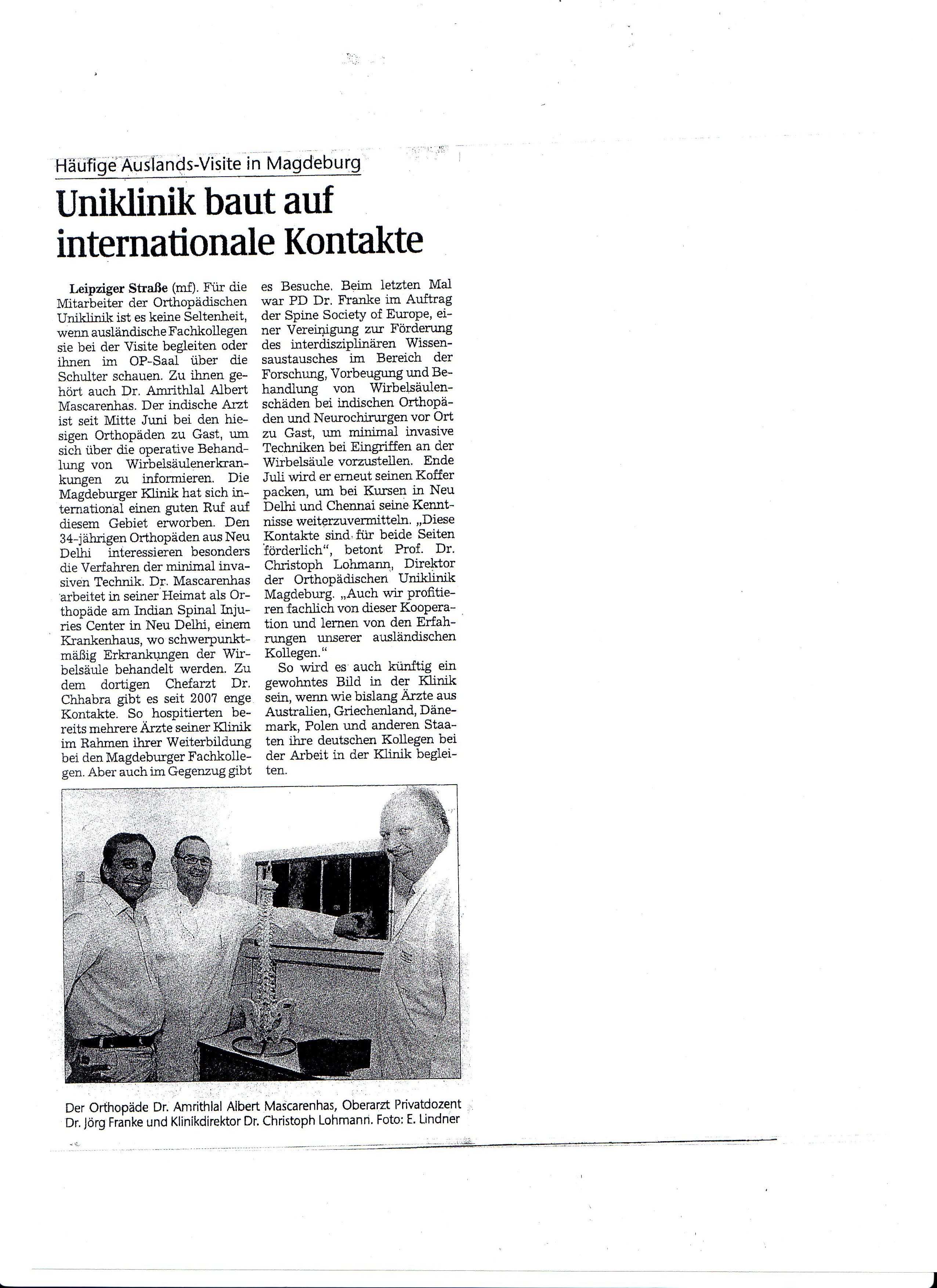 21.07.2010 "Uniklinik baut auf internationale Kontakte" Magdeburger Volksstimme