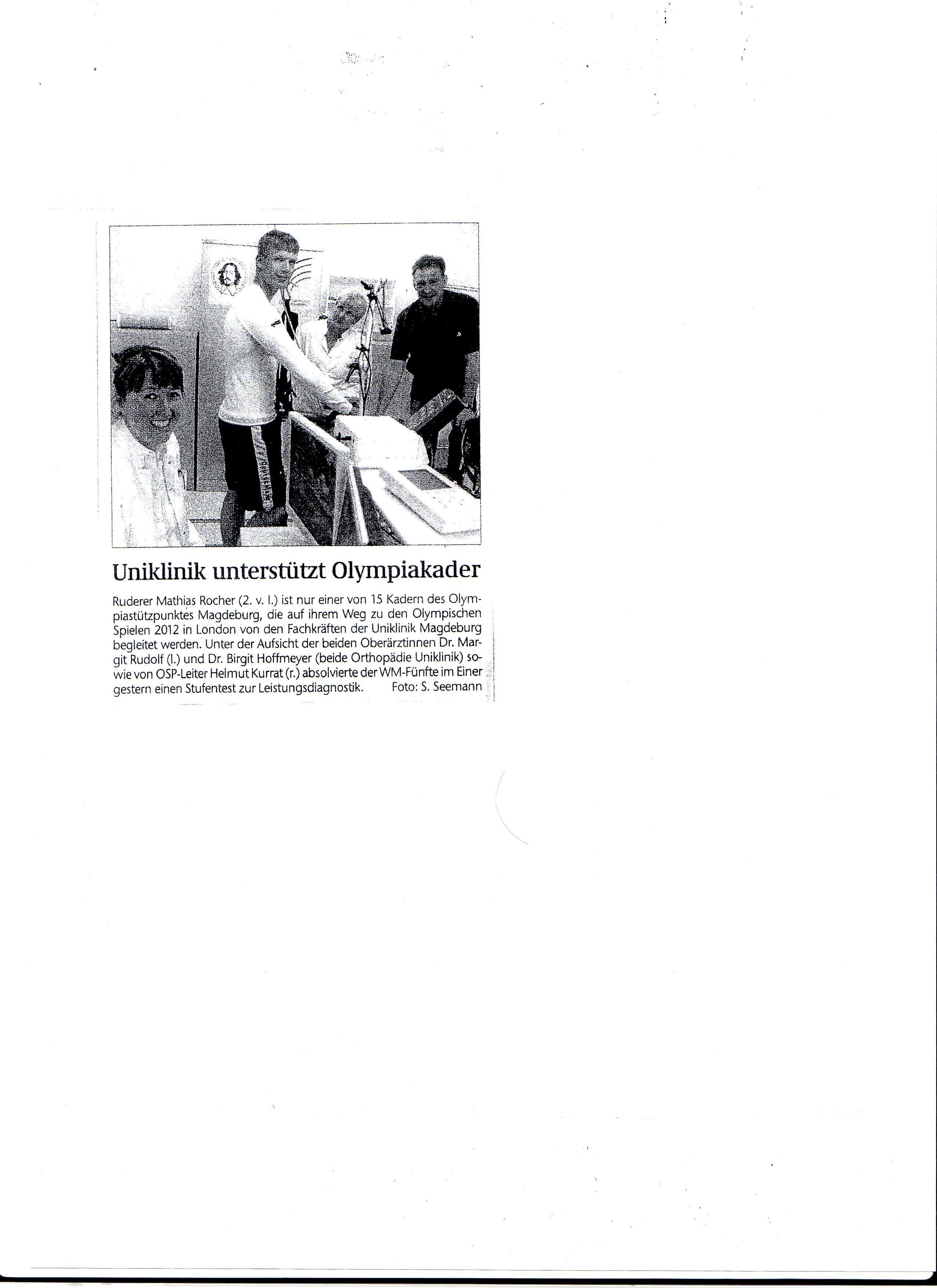 27.04.2010 "Uniklinik unterstützt Olympiakader" Magdeburger Volksstimme