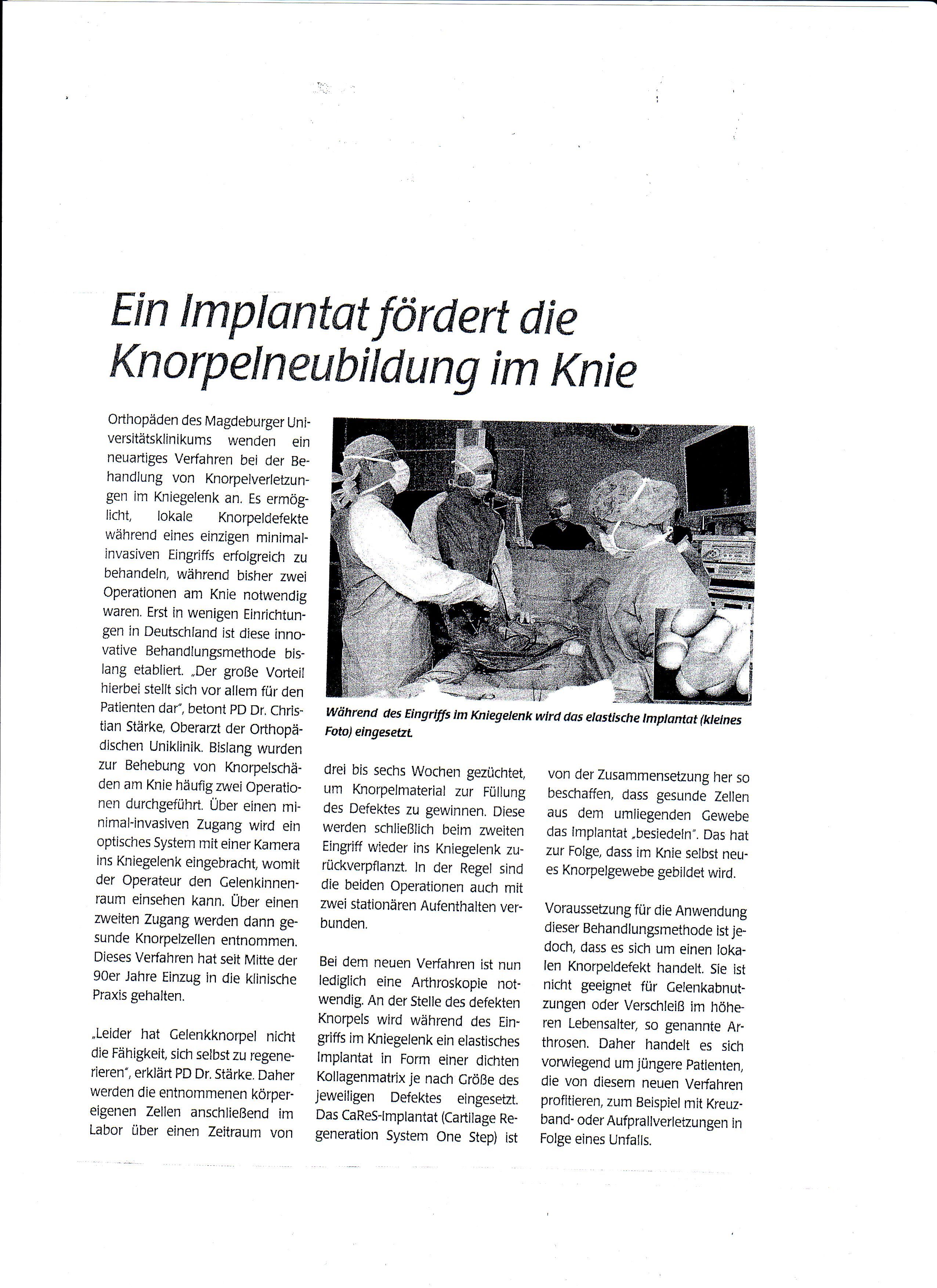 12/ 2010  "Ein Implantat fördert die Knorpelbildung im Knie" Medicus